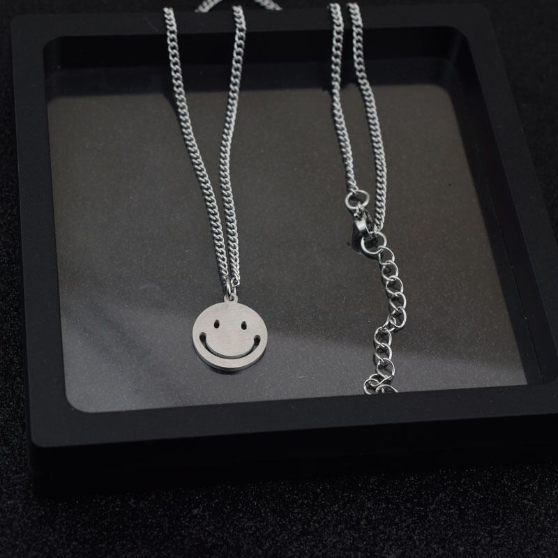 淘宝網クロスボーダーソースステンレススマイリーフェイスペンダントネックレスビブラトファストハンドネットセレブダブルレイヤードネックレス卸売 レッド レース mi1283030633125