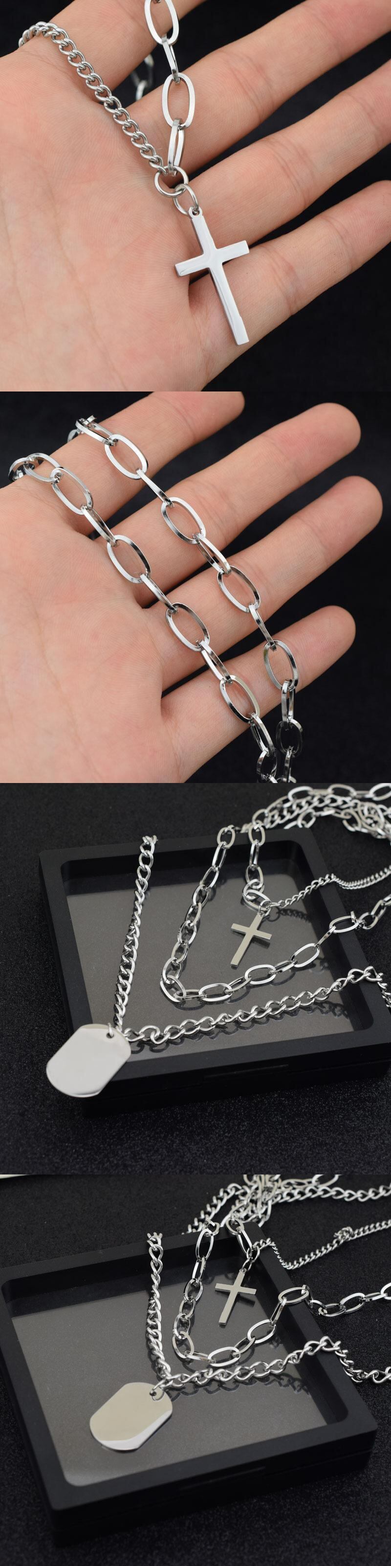 の出典:バンジー、ヒップホップボーイ、3層ネックレス取り外し可能なステンレススチールクロスネックレス レース mi122370671215