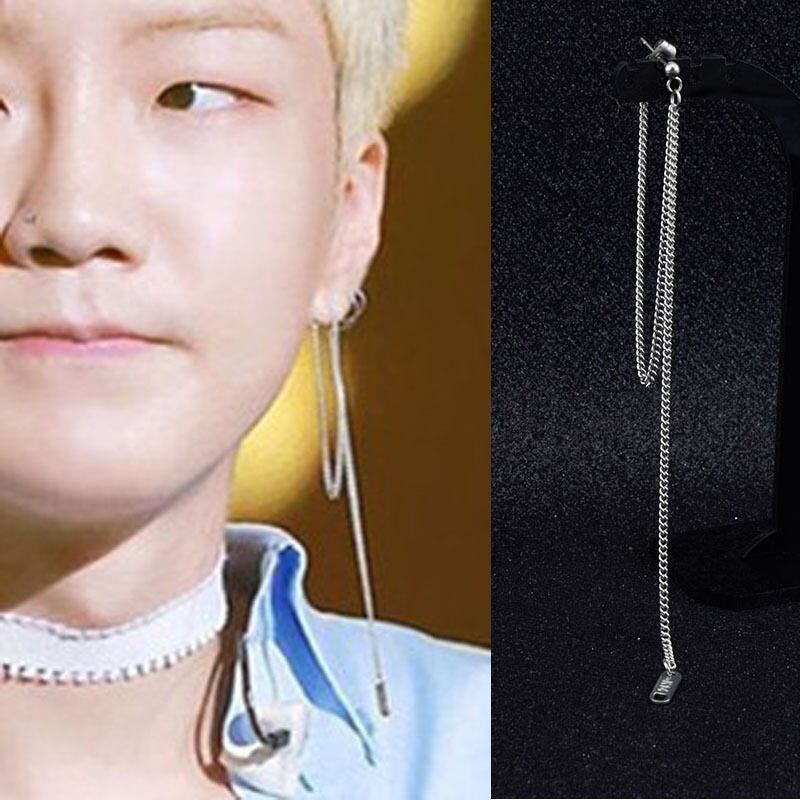 防弾ユースリーグ同じスタイルの超ロングツーウェアスタッドピアススタイルの冷風ステンレススチールチェーンピアス イヤリング リング 指輪 mi1273698786970