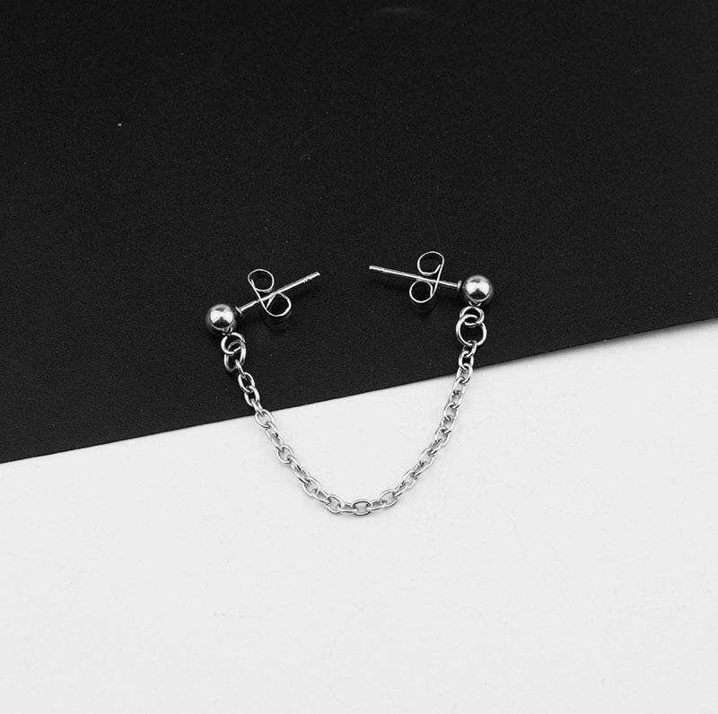 淘宝網販売アイドル研修生ファン成城ダブルスタッドピアスチェーンスタッドピアスチタン鋼非対称イヤリングジュエリー卸売 指輪 mi1253374969243