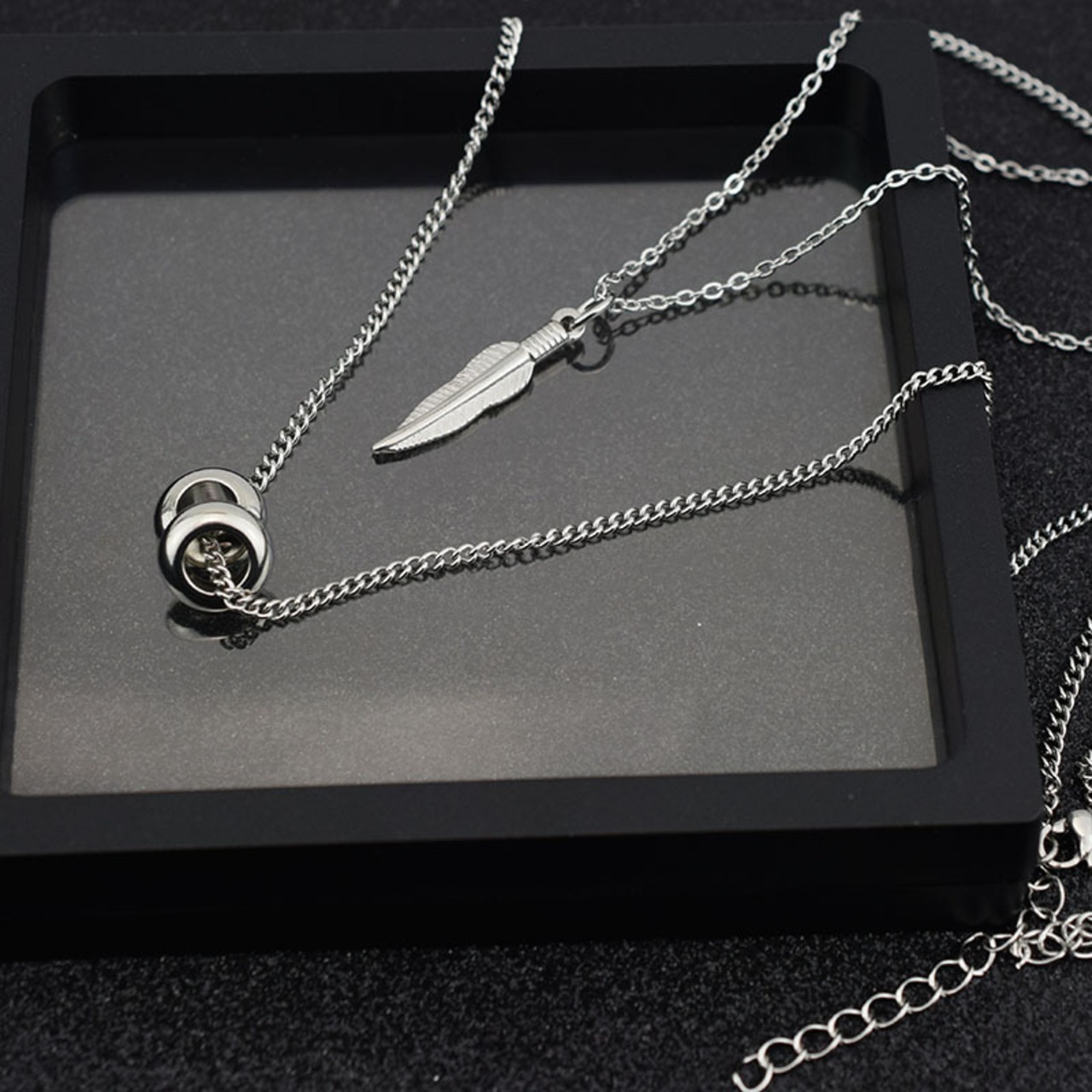 同じ段落の王Yiboダブルネックレス鎖骨チェーンセーターチェーン取り外し可能な長いネックレス男性と女性のステンレス鋼のネックレス ロング レース mi1261181314502