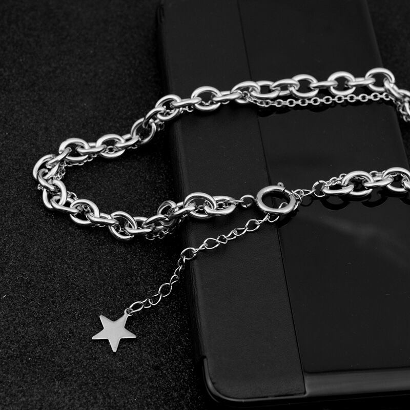 ソース太くて薄い二本鎖混合ネックレスステンレス鋼小さな五つ星Telネックレス鎖骨チェーン レース mi1266835213907