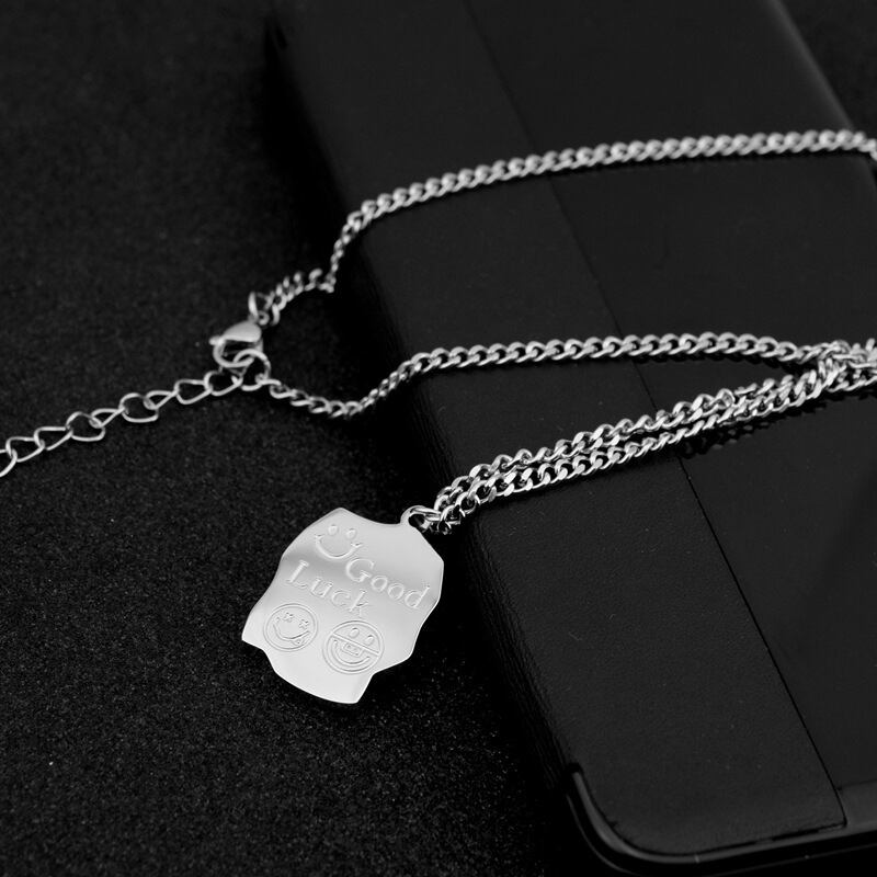 淘宝網ソーススマイリーフェイスグッドラックマルチラテラルスクエアペンダントネックレスステンレススチールニュートラルインロングネックレス レース スクウェア mi1218764276237