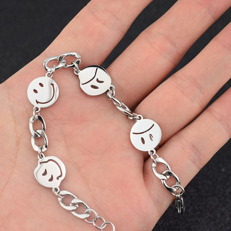 Taobao販売ステンレス鋼スマイリーフェイスネックレス絵文字バッグネックレスブレスレット卸売男性と女性のカップル鎖骨ネックレス レース mi1255425633969