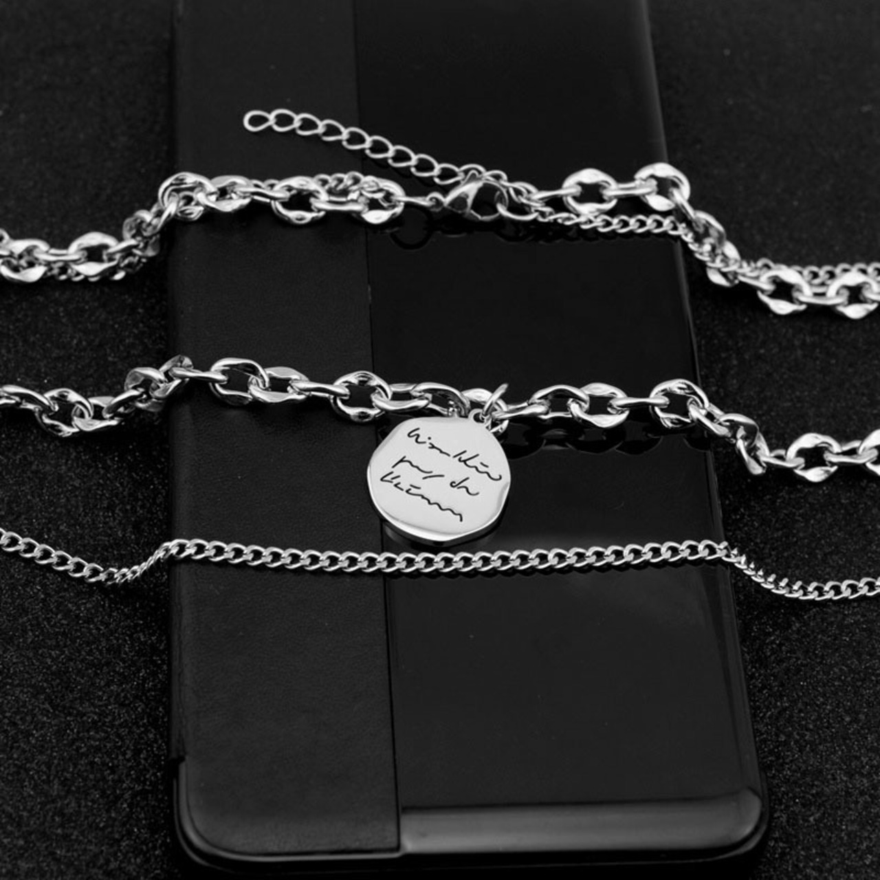のソースの新しい髪のネックレスステンレス鋼文字ディスク二重層鎖骨チェーン男性と女性のネックレス卸売 レッド レース mi1239552157363