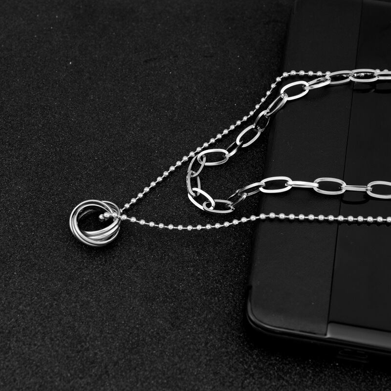 直接ステンレス鋼二層ネックレス、フラワー ボール ビーズ チェーン ロング ネックレス セーター チェーン、鎖骨チェーン ネックレス卸売 レース フラワーデザイン mi1239366014708