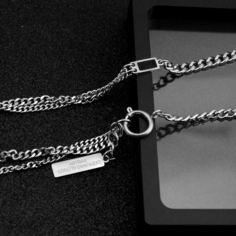 ステンレス鋼の黒い小さな正方形の非対称のネックレス、鎖骨チェーン、ネックレス付きのネットの有名人のビブラートを組み合わせてマッチさせます。 ブラック レース スクウェア mi1268480053500