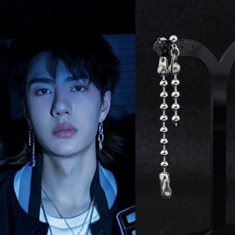 王一博 同じイヤリング 誇張 イヤリング ステンレス鋼 ビーズ チェーン 個性 ビーズ チェーン フロントとバックの2つのイヤリング 指輪 mi1280554662447