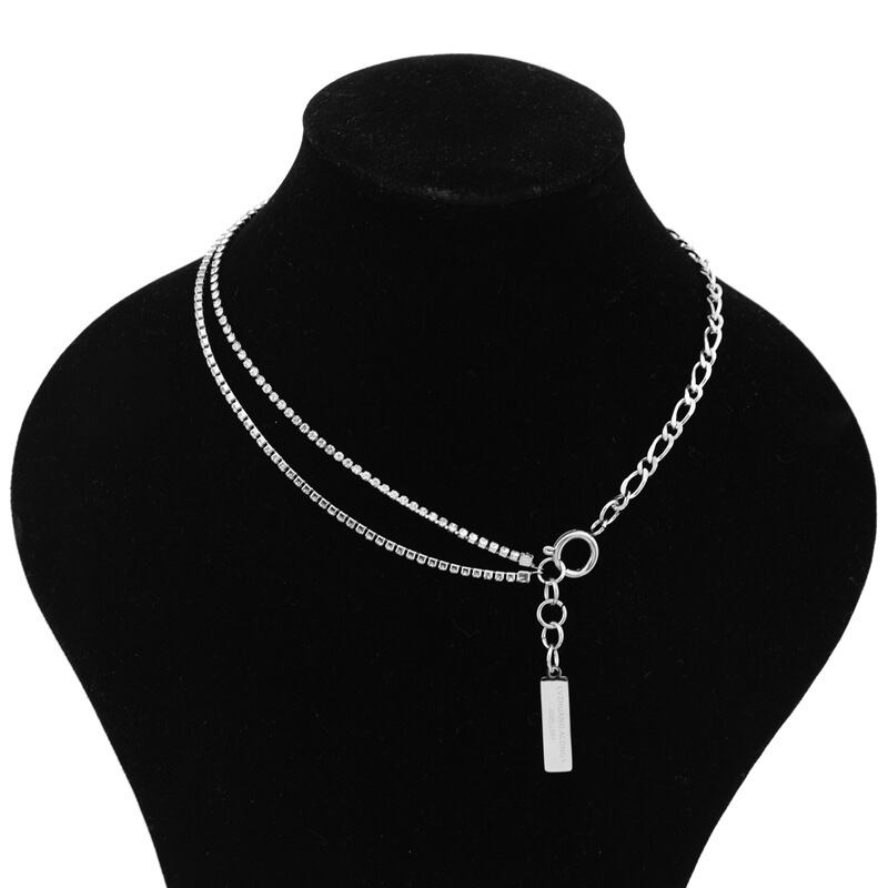 淘宝網の国境を越えた供給、ステンレス鋼の光沢のあるラインストーン チェーン ステッチのネックレス、ネックレス、鎖骨チェーンの卸売、色あせしません。 レース mi1270121059140