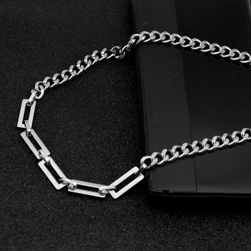 タオバオの新しいネックレス、ステンレス鋼の個性を積み重ねる非対称のネックレス、手作りのチェーンの男女カップルのネックレス レース mi1276573259312