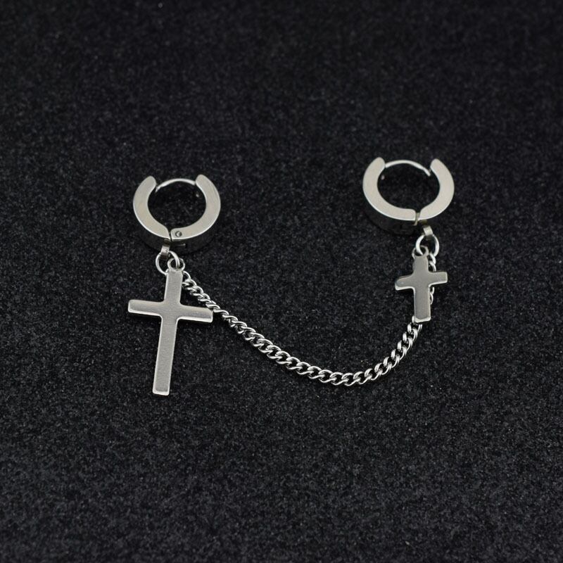 タオバオソースダブルクロス耳骨チェーンニッチ男性と女性の耳の骨クリップイヤリングステンレス鋼パーソナライズされた耳クリップ 指輪 mi1224112556361