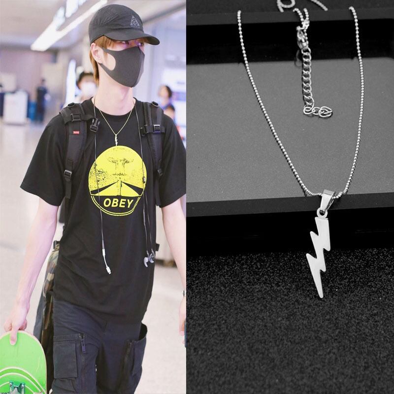 王一博 ライトニングネックレス, ステンレススチールファインビーズチェーン, 鎖骨チェーンネックレス ショートネックレス スタージュエリー レース mi1281052984316