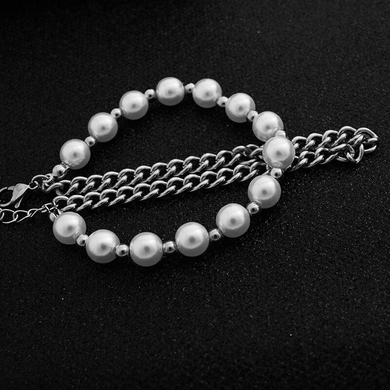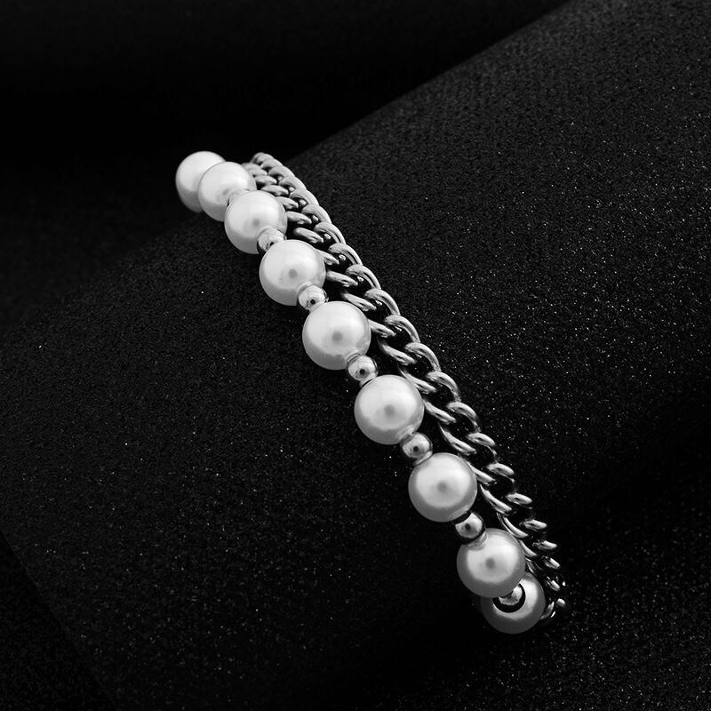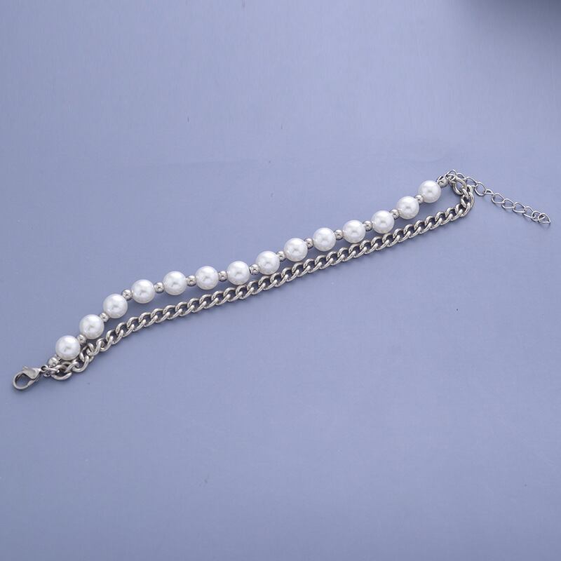 直販ステンレススチールニューヘアパールスチールボール2層ブレスレットブレスレットビブラートアンカーネットセレブリティブレスレット卸売 真珠 mi1215790397178