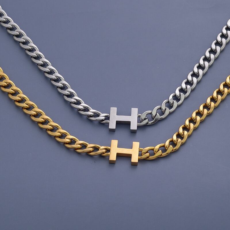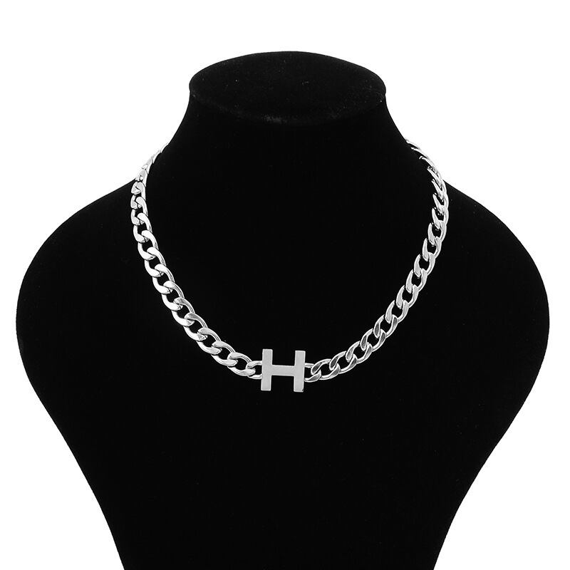 国境を越えた淘宝網の供給ステンレス鋼の個性ヒップホップヒップホップ鎖骨チェーンHレターネックレス男性と女性のネックレス レース mi125833330527